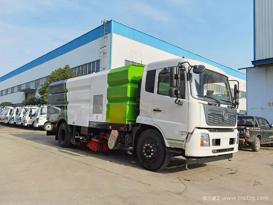 国六东风天锦洗扫车:采用东风天锦国六底盘,康机210马力发动机,5000mm轴距。容积9水7尘,18米高压冲洗卷盘,最大清扫宽度3.5m,吸入颗粒度120mm,尾部LED箭头灯。