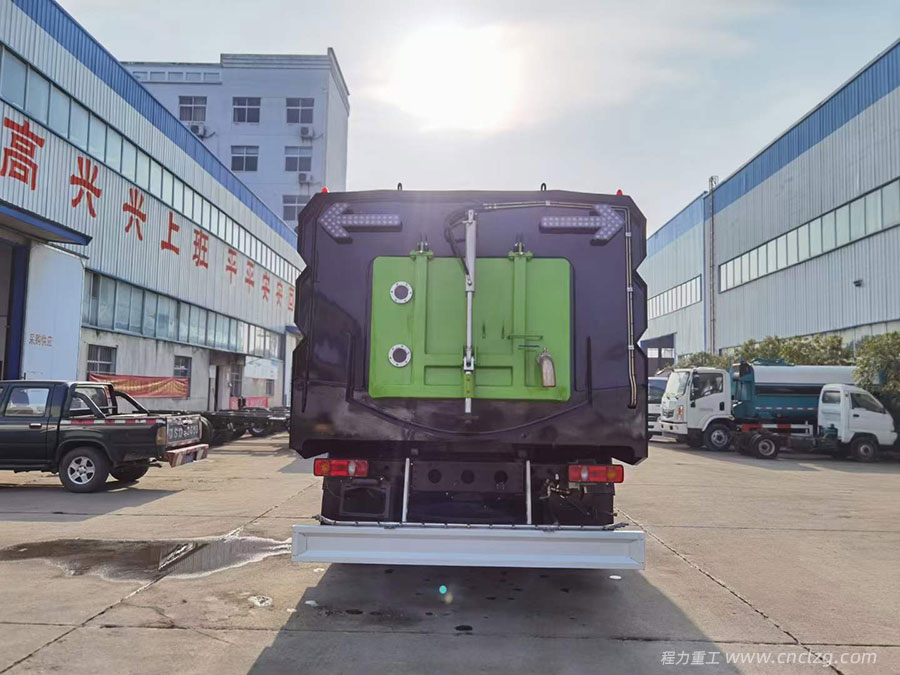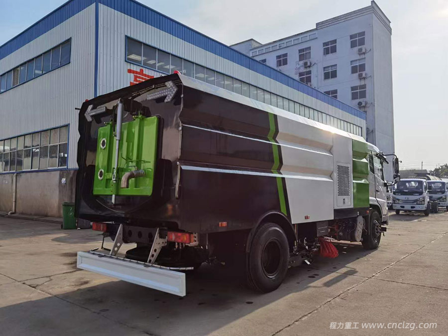 中置2扫盘、吸嘴、三洋马达、康明斯170马力副发动机,德国原装进口高压水泵(前冲、侧喷、中喷、后喷雾、侧冲洗车水枪、垃圾箱自洁装置)、万向高压路沿清洗、低压泵前冲、不锈钢水箱、垃圾箱;不锈钢高压管路、施耐德控制开关、美国传感器、尾部LED箭头灯、机油、垃圾箱、水箱均带防溢或低水位报警装置;倒车及洗扫状态驾驶室内监视器、18m高压冲洗卷盘、最大洗扫宽度3.5m;高压冲洗高度≥21m。可选装前置雪铲、扫雪滚。